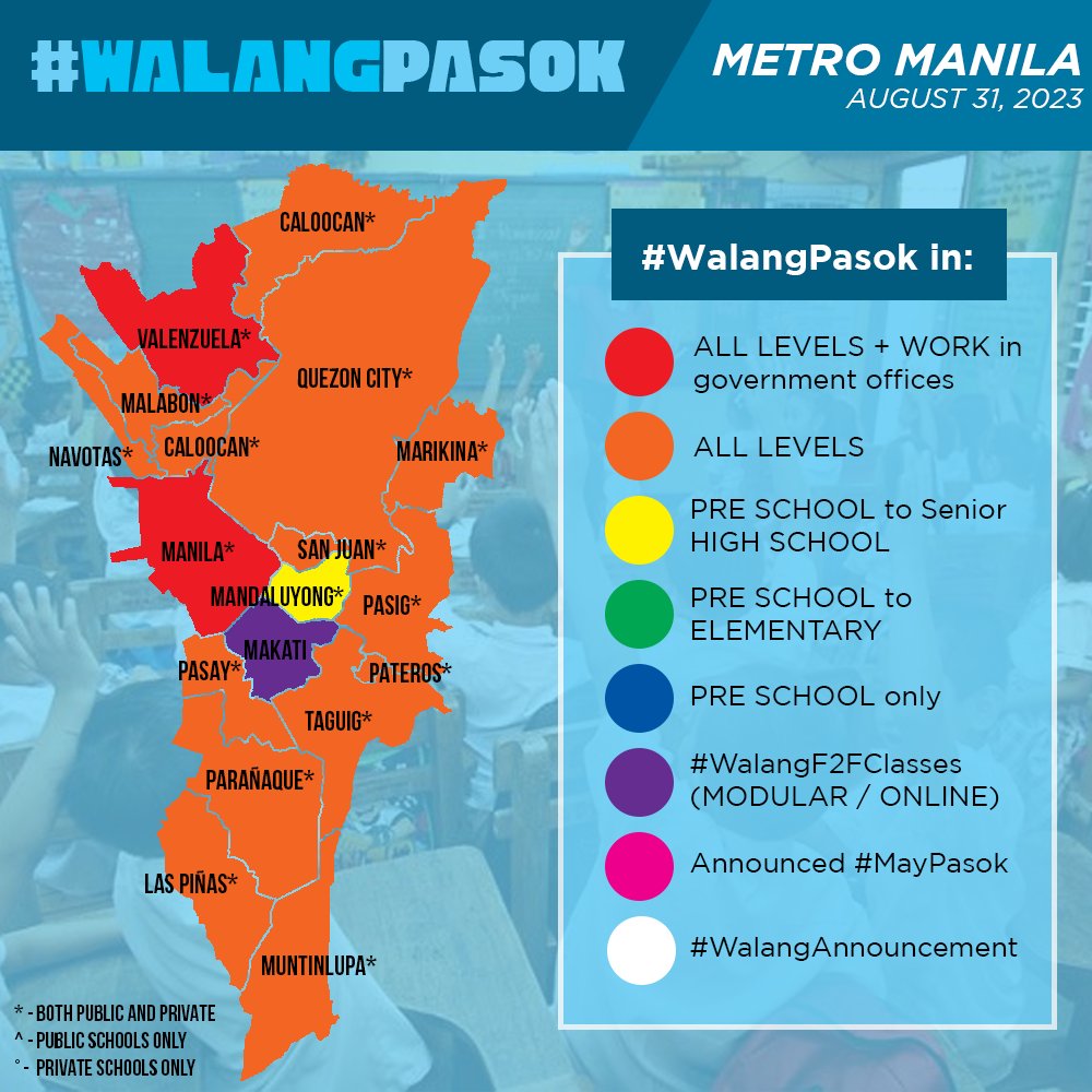 dave on X: “#WalangPasok UPDATE MAP | METRO MANILA As of 8/31/2023