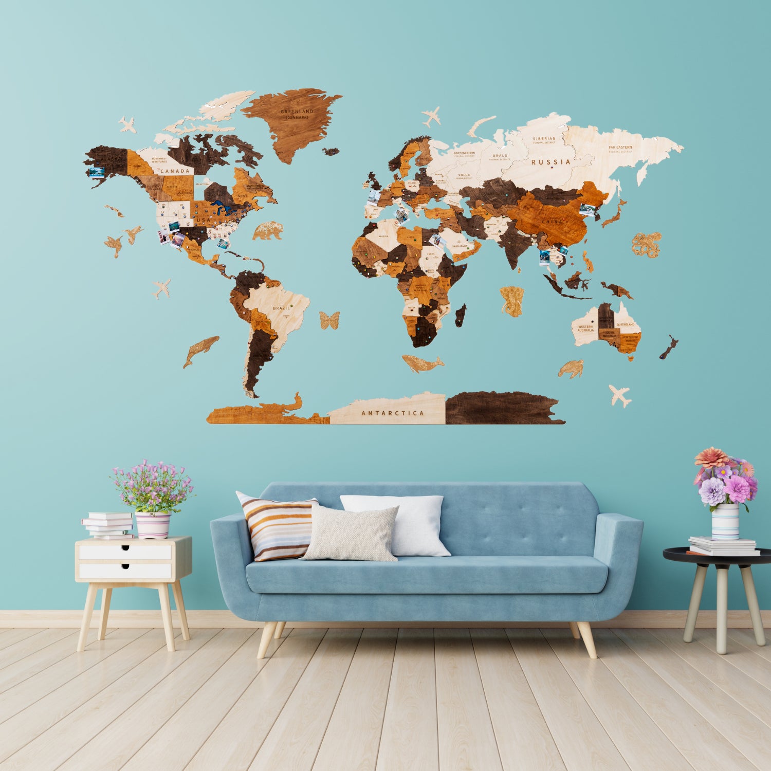World Map Push Pin Wall Art, Cork World Map Board, Wooden World